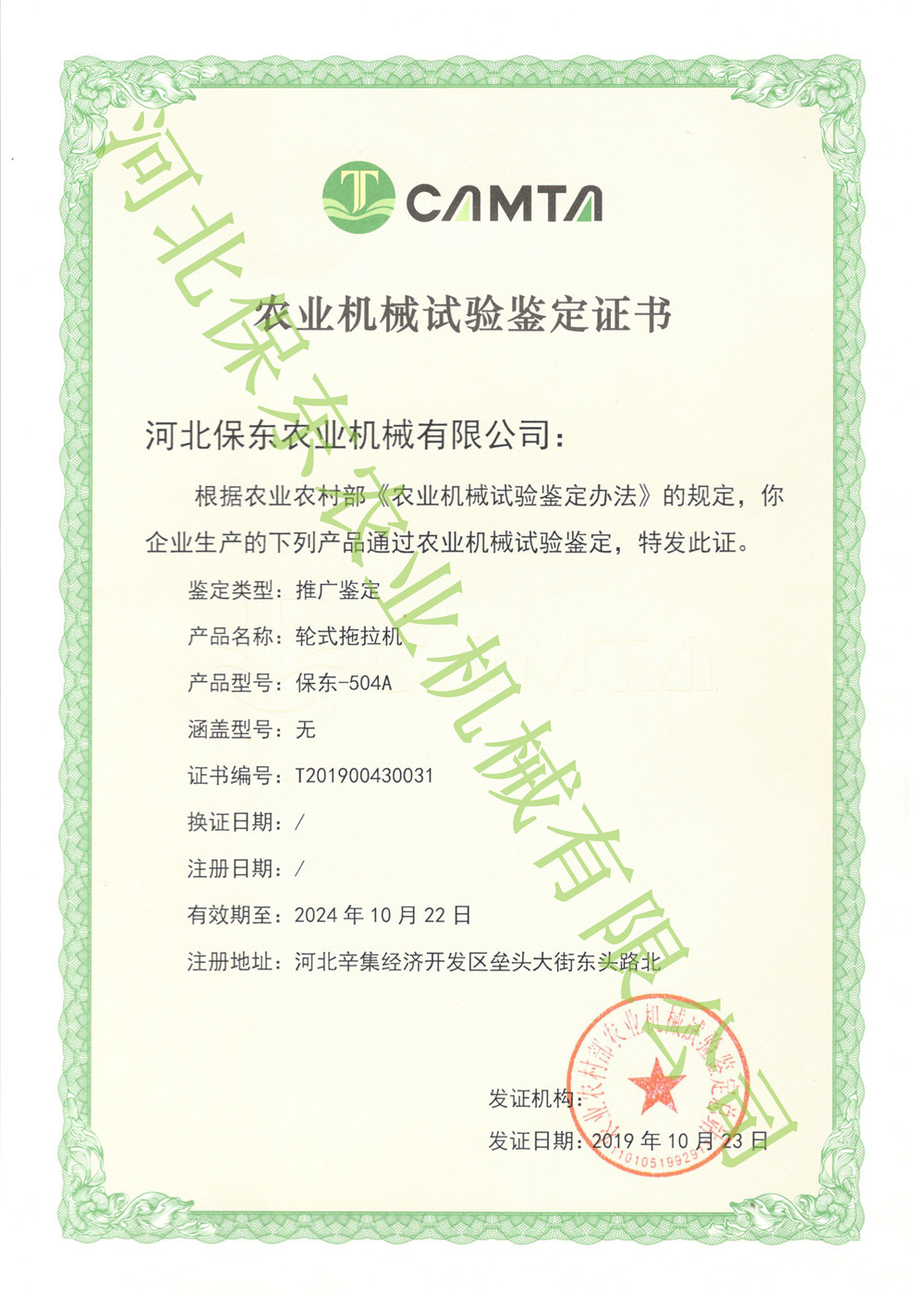 河北保東農業機械有限公司成立于2006年,坐落于“中國皮都”河北省辛集市,地理位置優越,來往交通便利。于2018年斥資3000萬在辛集市省級技術開發區興建新廠,建筑面積占地兩萬平方,并正式啟用。同年被定為“2018辛集重點項目”,設有一套完整的裝配流水線,并規范各項管理制度,從源頭上保證了產品的質量、交貨期和故障率。
